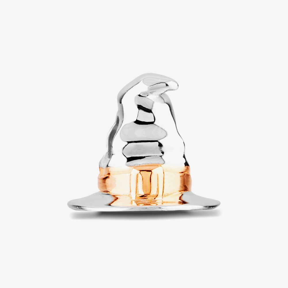 A mystical Rosa Lea charm made from sterling silver composed of a wizards hat with a rose gold plated band, perfect for fantasy and fairy tale fans.