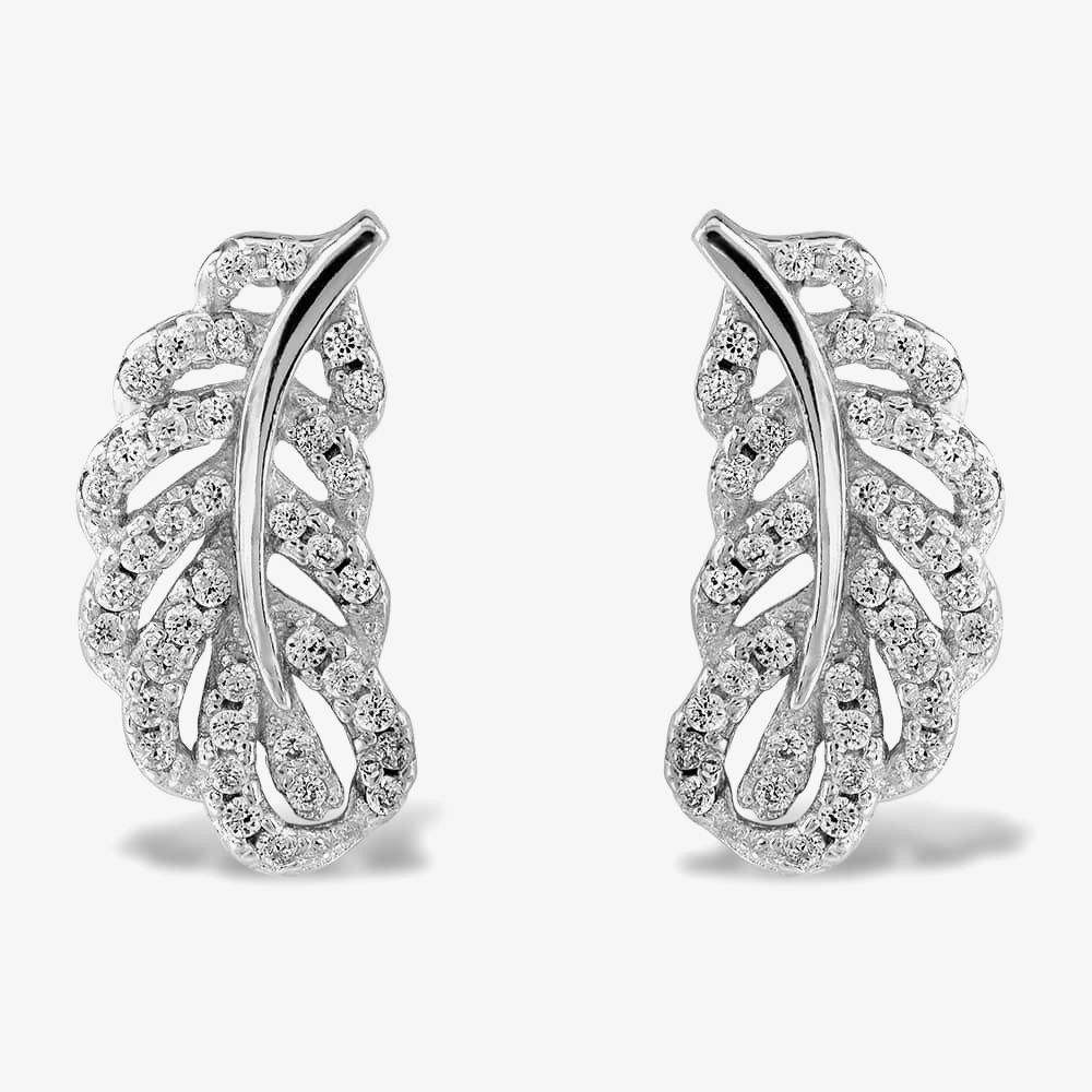 This beautiful set includes a sterling silver cubic zirconia large leaf pendant necklace and sterling silver cubic zirconia leaf stud earrings.