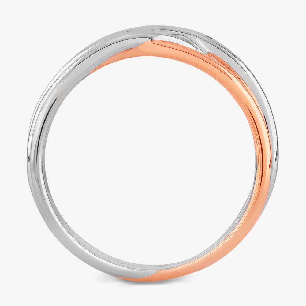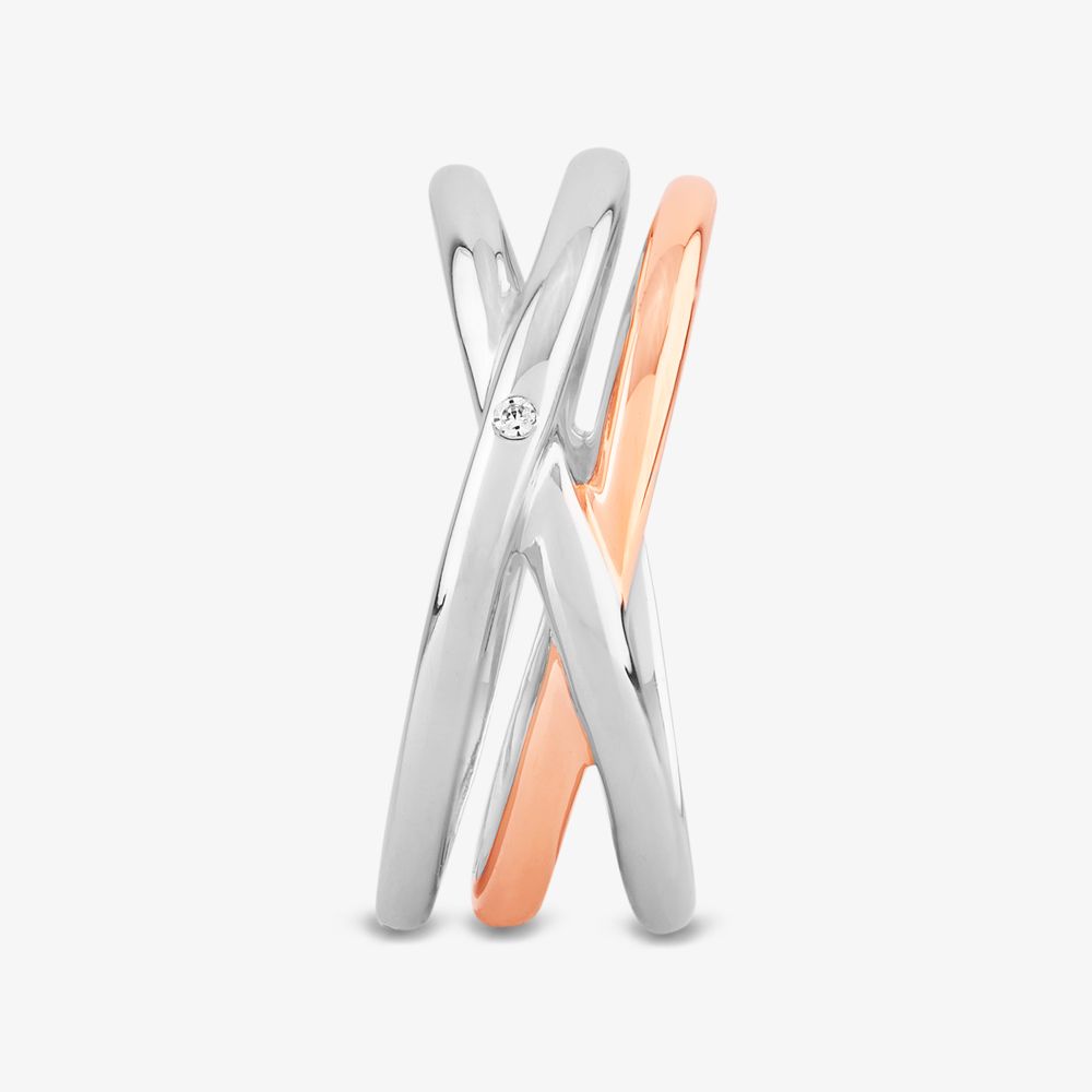 The Two Tone three-ring offering showcases an interlinked design, with a single stone-set band, a plain shimmery link and a rose gold-tone loop for a bright colour contrast.