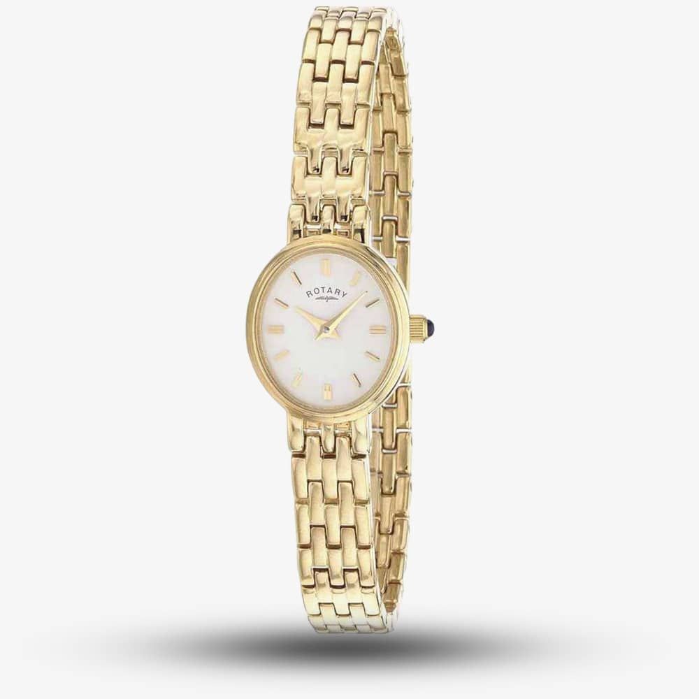 This stainless steel bracelet watch from Rotary is placed in gorgeous gold. The bracelet uses a jewellery clasp fastening the oval casing accommodates the classic white dial which has baton hour markers. Product Description: - Case Width: Approx 19mm - Water Resistance: 30m - Quartz Movement
