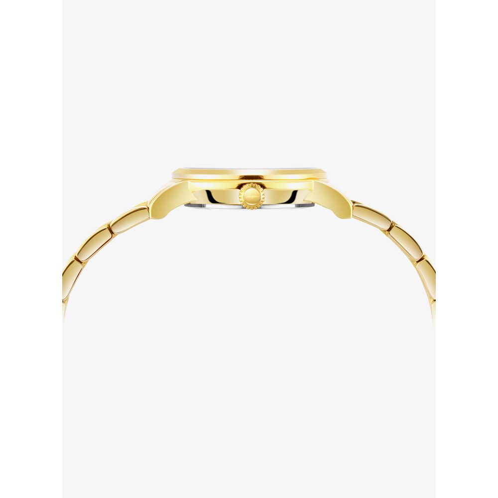The Rotary Ladies Windsor LB05423/01 watch combines a 27mm round shaped yellow gold PVD coated stainless steel case and gold tone stainless steel bracelet with a push button deployment clasp. It has a silver guilloche patterned analogue dial which is protected beneath a sapphire crystal glass. Power is generated by the quartz movement. This model also has a water resistance of up to 50 metres.