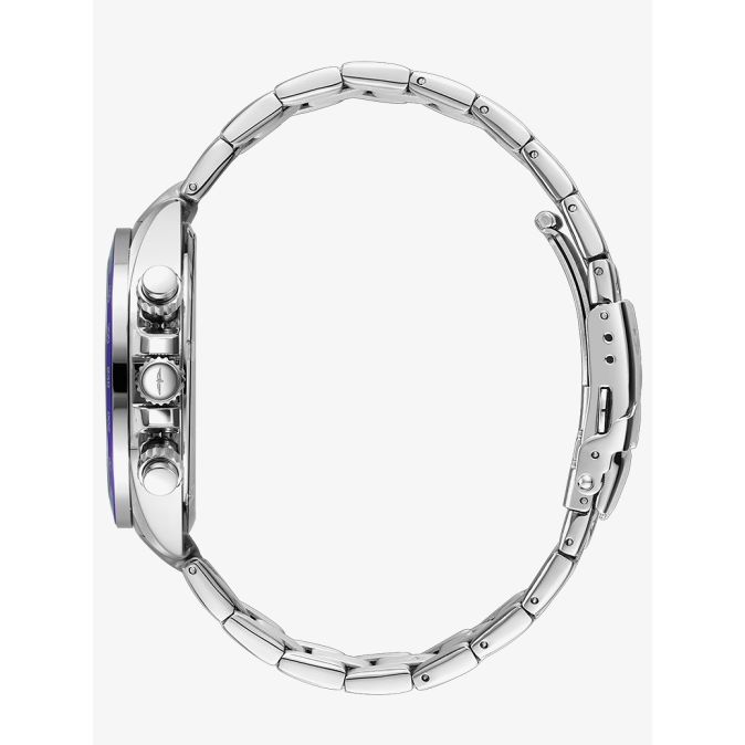 The Rotary Mens Henley Chronograph Blue Dial GB05440/05 watch combines a 41mm round shaped stainless-steel case and silver stainless-steel bracelet with a fold over clasp. It has a blue analogue dial with luminescent hands, date display, chronograph sub-dials, a tachymeter scale which is protected beneath sapphire crystal glass. Power is generated by the quartz movement. This model also has a water resistance of up to 100 metres.