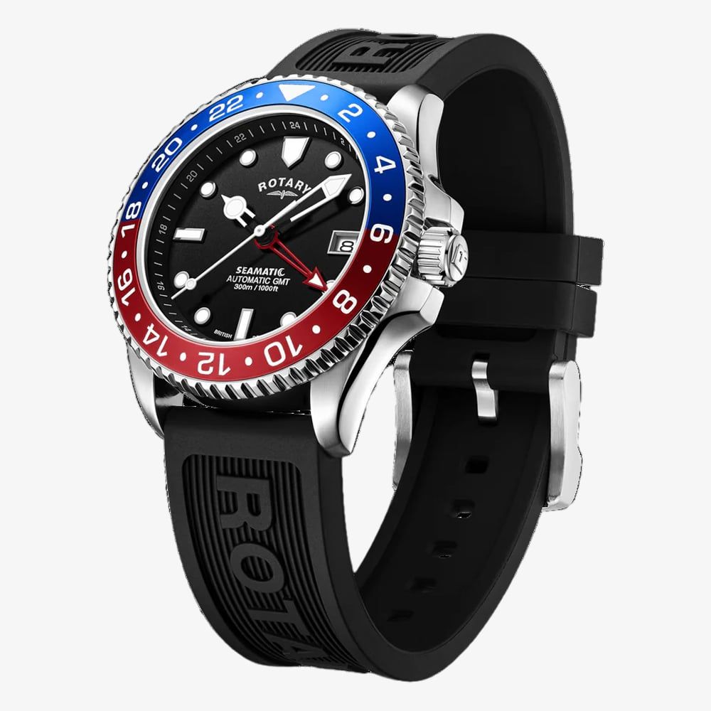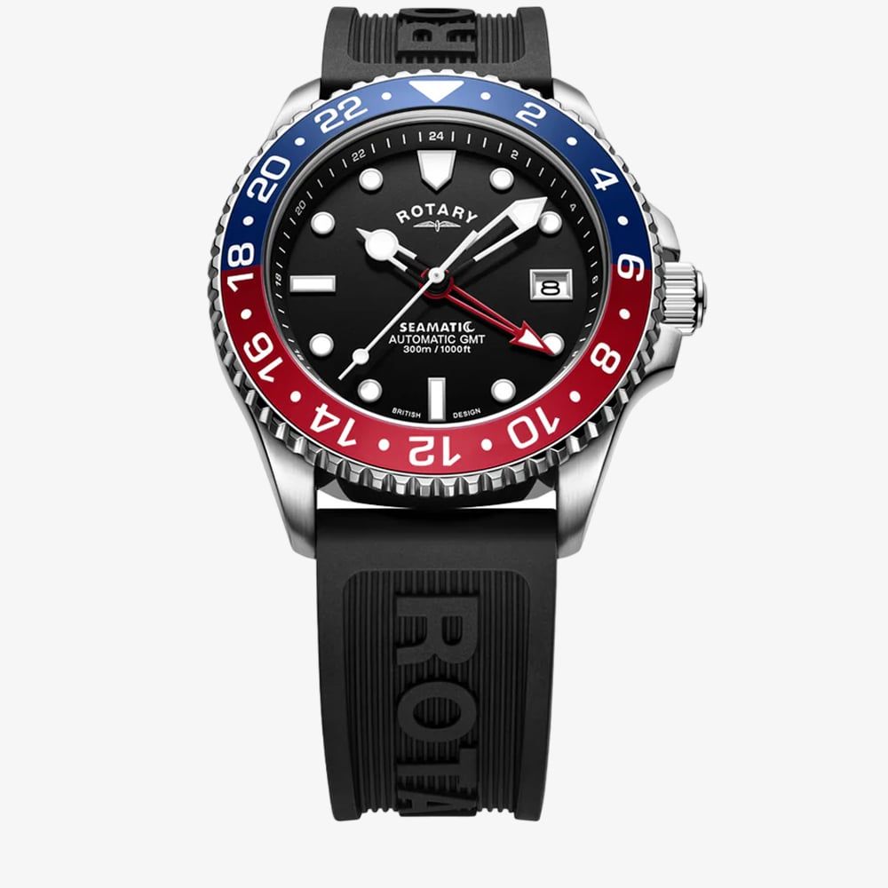 A stylish and functional dive watch designed for long lasting durability and boasting a variety of key features, including a GMT function, track two time zones simultaneously, a unidrectional bezel, and an unprecedented 300m water resistance with a power reserve of up to 40 hours, the perfect blend of robust construction and slick styling, this watch makes the perfect travel companion.