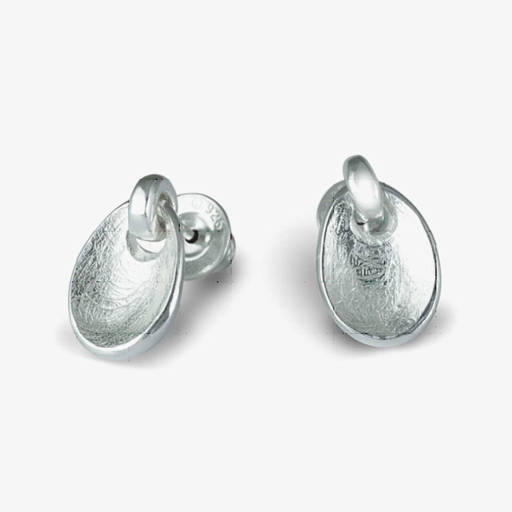 Handcrafted in sterling silver, these dropper stud earrings have a textured oval disc design, making them ideal for everyday wear.