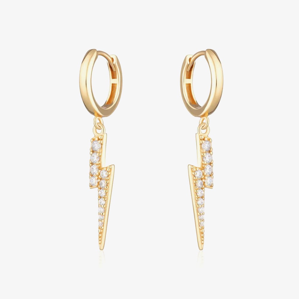 The lightning bolt motif, a favourite of style icons, is a must-have statement piece. Each charm hangs from a 12mm hoop with a hinged clasp, adorned with white cubic zirconia stones for a flash of sparkle. Crafted from rhodium-plated silver.