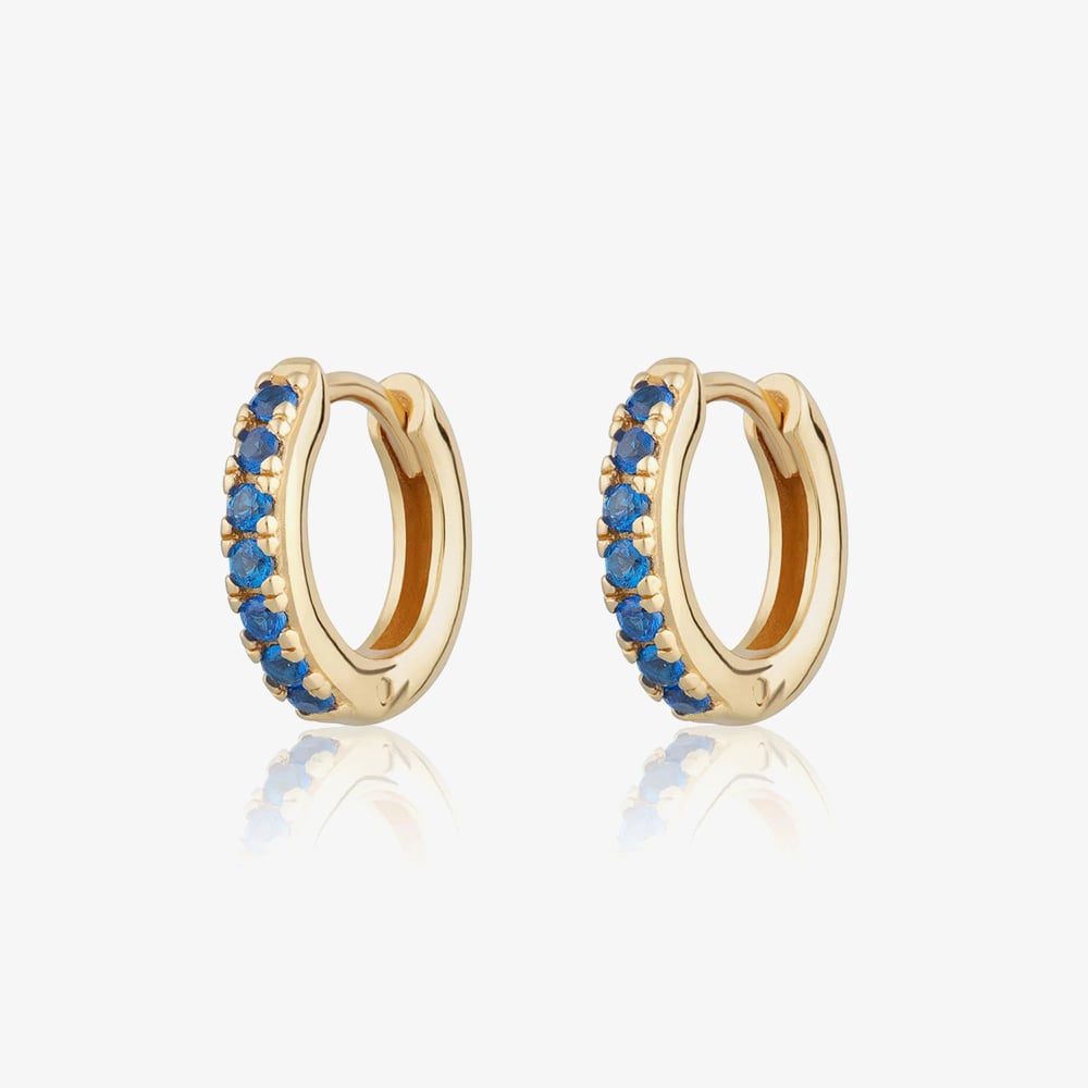 The Sterling Silver 18ct Gold Plated Blue Cubic Zirconia Huggie Hoop Earrings bring a dazzling shimmer to a classic design. Adorned with vibrant sapphire-blue nano stones on the front, these sleek huggie hoops add a touch of sparkle to any look. Comfortable for everyday wear, they’re a stylish and effortless way to elevate your ear stack.
