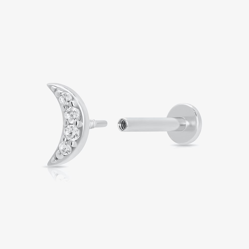 Scream Pretty Silver Rhodium Plated Cubic Zirconia Moon Single Stud Earrings SPS-47a