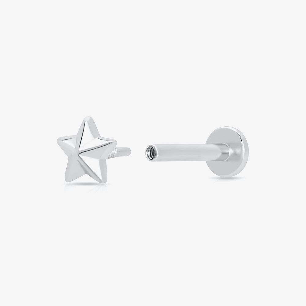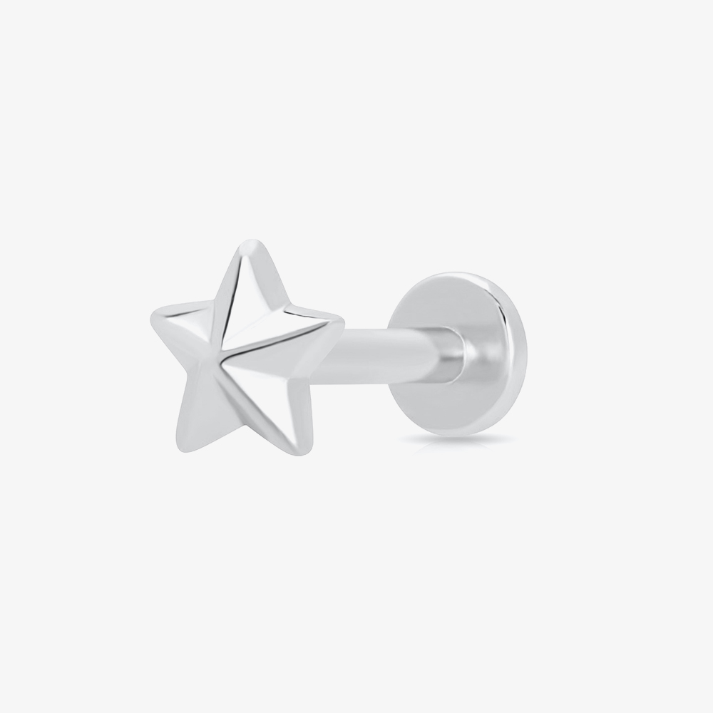 Add a touch of celestial charm with the Scream Pretty Sterling Silver Rhodium Plated Star Single Stud Earring. Crafted with a sleek star design, this single stud is perfect for mixing, matching, or wearing solo for a subtle sparkle. Labret Stud Earring with Flat Back