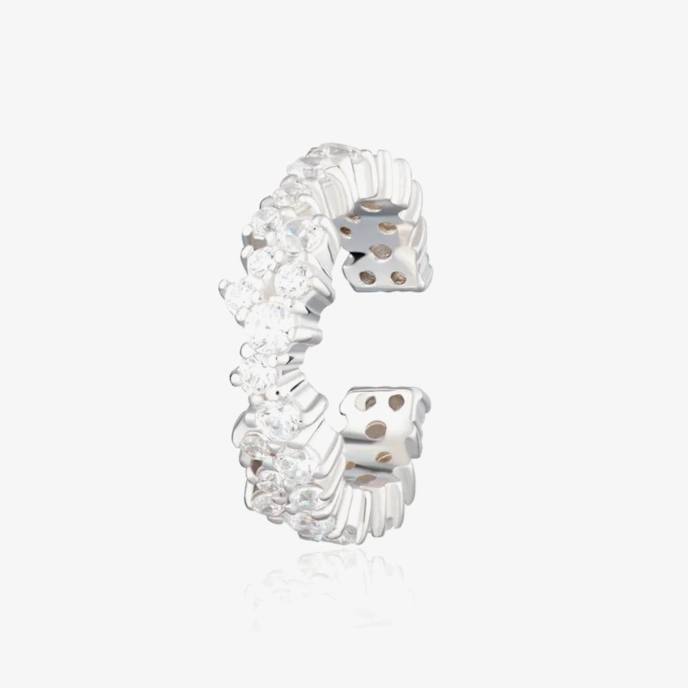 Add a touch of stardust and sparkle to your ears with our exquisite silver stardust ear cuff. Inspired by the wonders of the cosmos, this ear cuff is adorned with a shimmering array of white cubic zirconia stones, creating a striking, starry design. Resembling a constellation in a night sky, this celestial-themed ear cuff is the perfect way to shine all day long. Crafted from rhodium-plated silver for a sleek, polished finish.