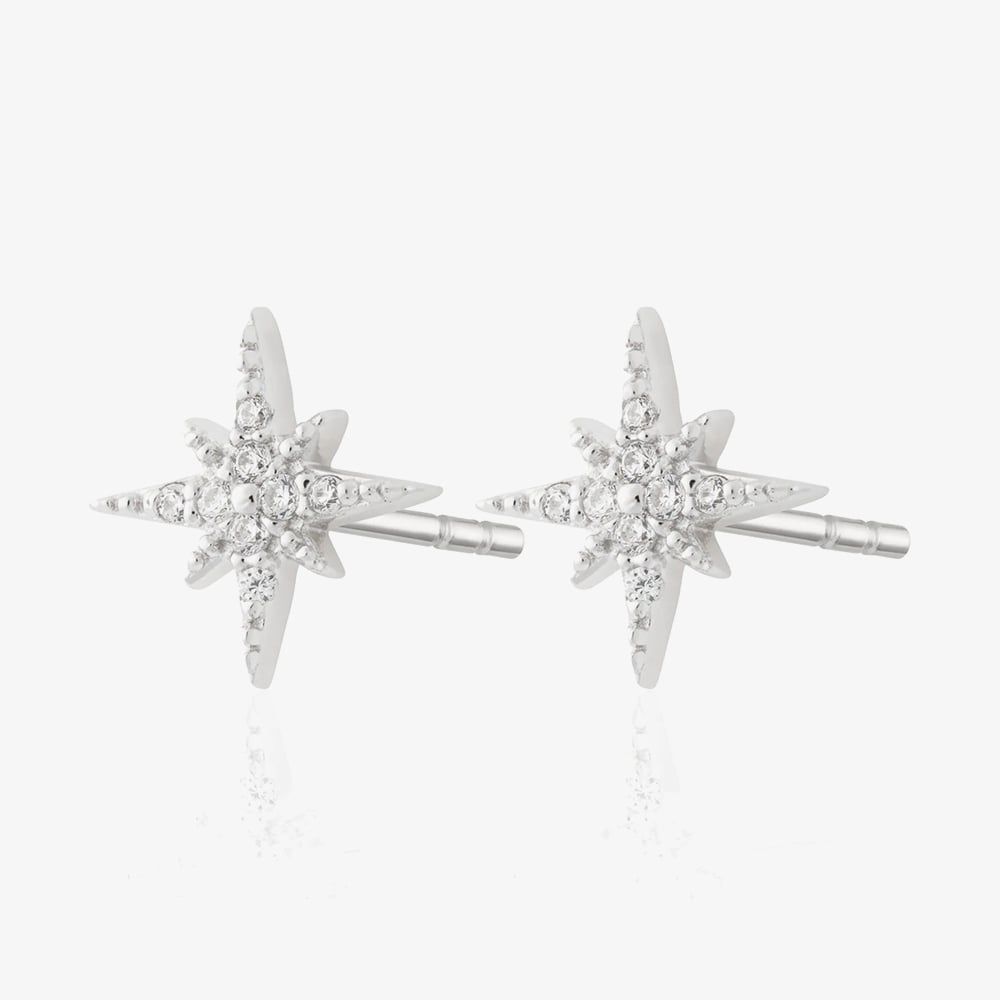Shine bright with these Starburst Silver Rhodium-Plated Star Earrings, beautifully adorned with white cubic zirconia stones. An effortless style upgrade, these modern classics blend a sleek, contemporary design with just the right amount of sparkle. Perfect on their own or paired with our Starburst Threader Earrings for a striking layered look—especially ideal for multiple piercings.