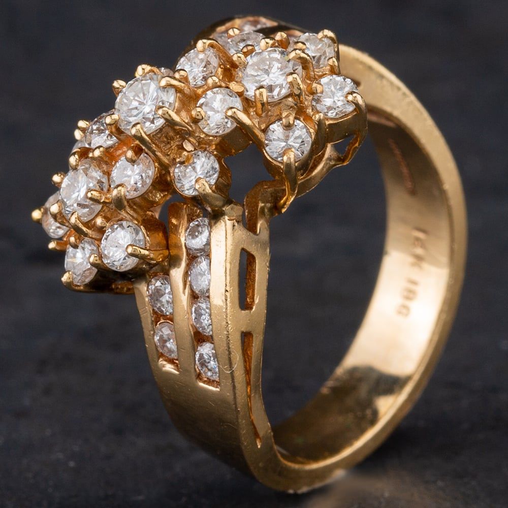 Second Hand 14ct Diamond Triple Cluster Cross Over Ring 4328783