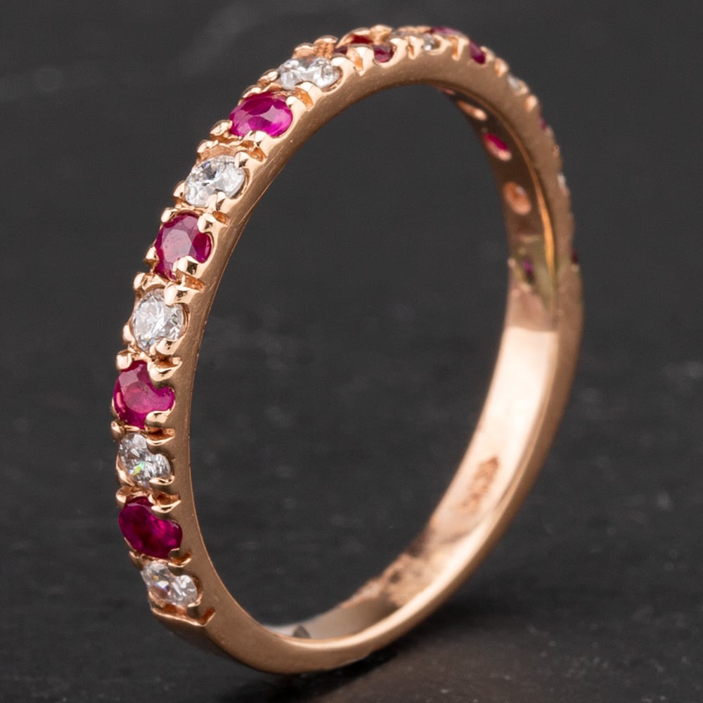 14ct Rose Gold Brilliant Cut Diamond and Ruby Set 16 Stone Half Eternity Ring Diamond Weight 0.37ct Ruby Weight 0.43ct