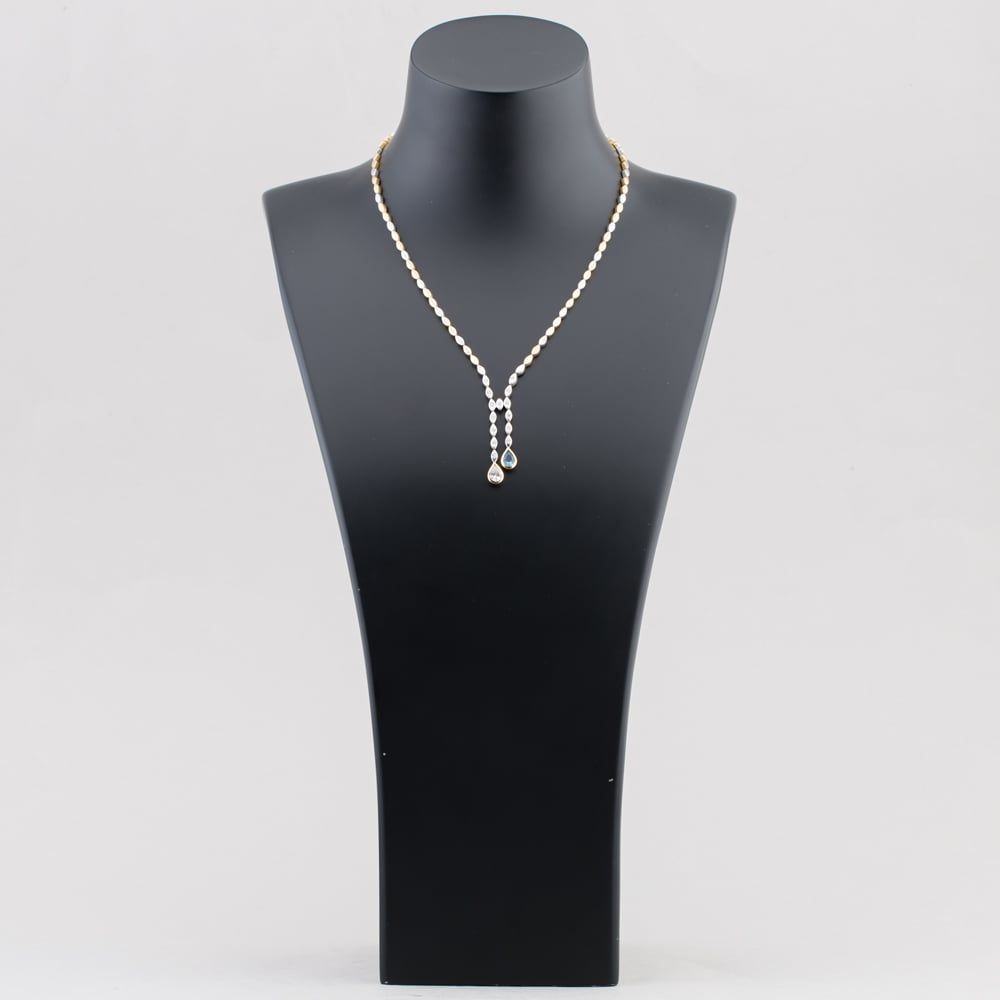 14ct three Colour Gold Aquamarine & Cubic Zirconia 18 Inch Chain Necklace