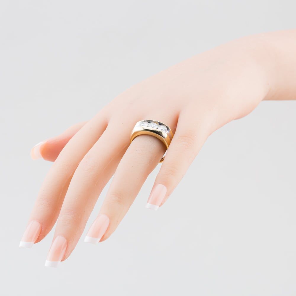 14ct Two Colour Gold 1.76ct Brilliant Cut Diamond three Stone Signet Ring