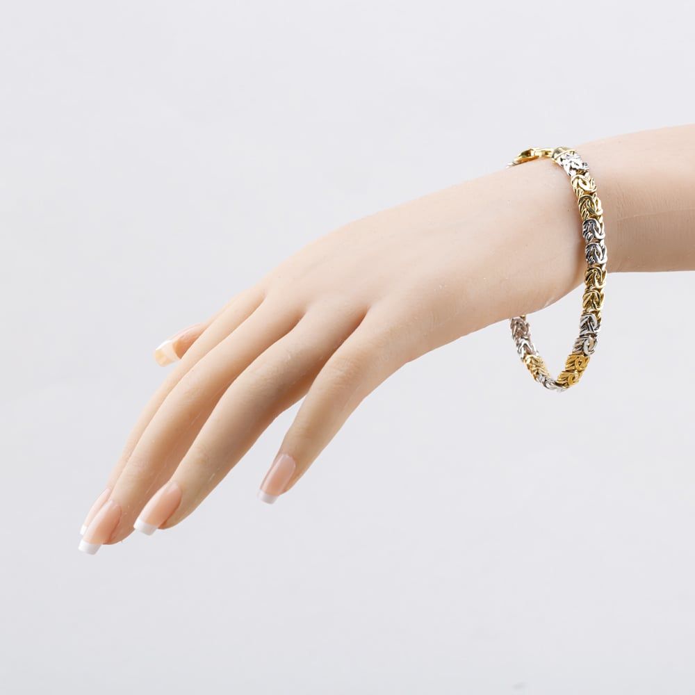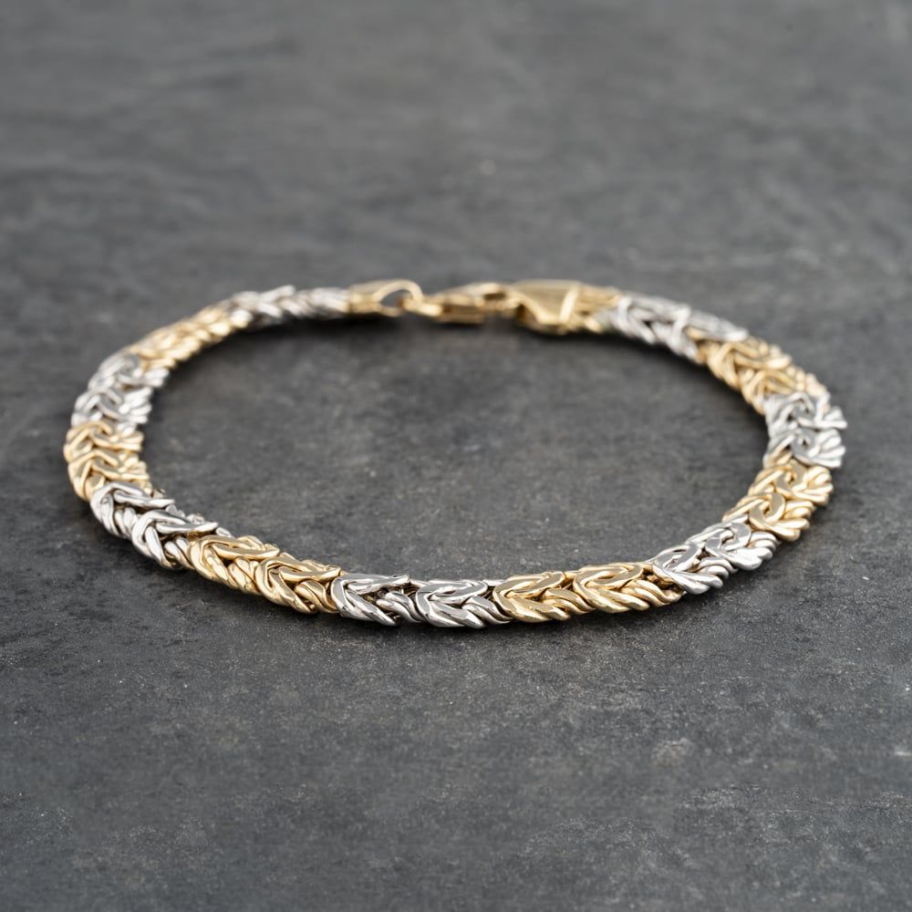 14ct Two Colour Gold 8 Inch Byzantine Chain Bracelet