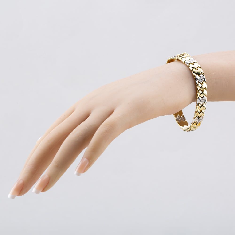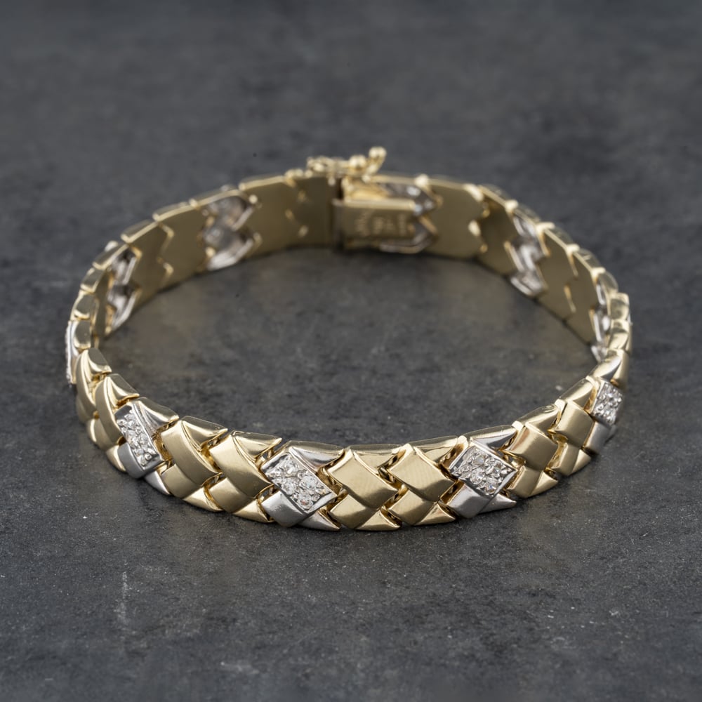 14ct Two Colour Gold Cubic Zirconia Set Woven Link 7.5 Inch Bracelet