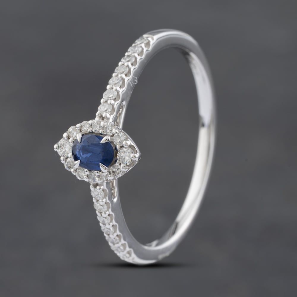 14ct White Gold 0.20ct Sapphire & 0.20ct Diamond Cluster Ring