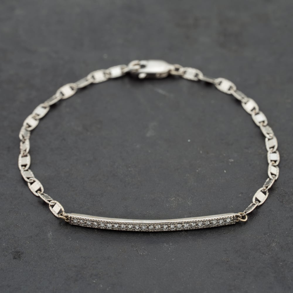 14ct White Gold 0.32ct Brilliant Cut Diamond Bar 7 Inch Identity Bracelet