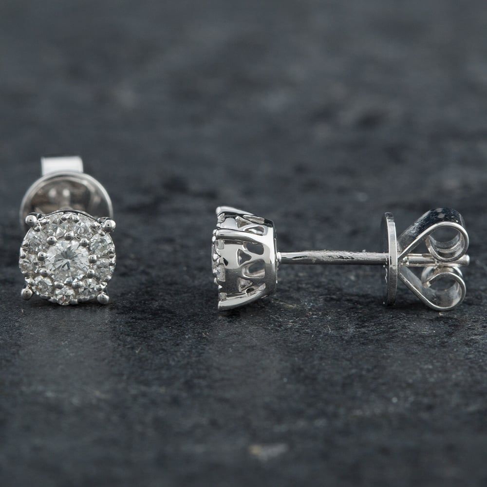 Batch 240 14ct White Gold 0.32ct Brilliant Cut Diamond Round Cluster Stud Earrings