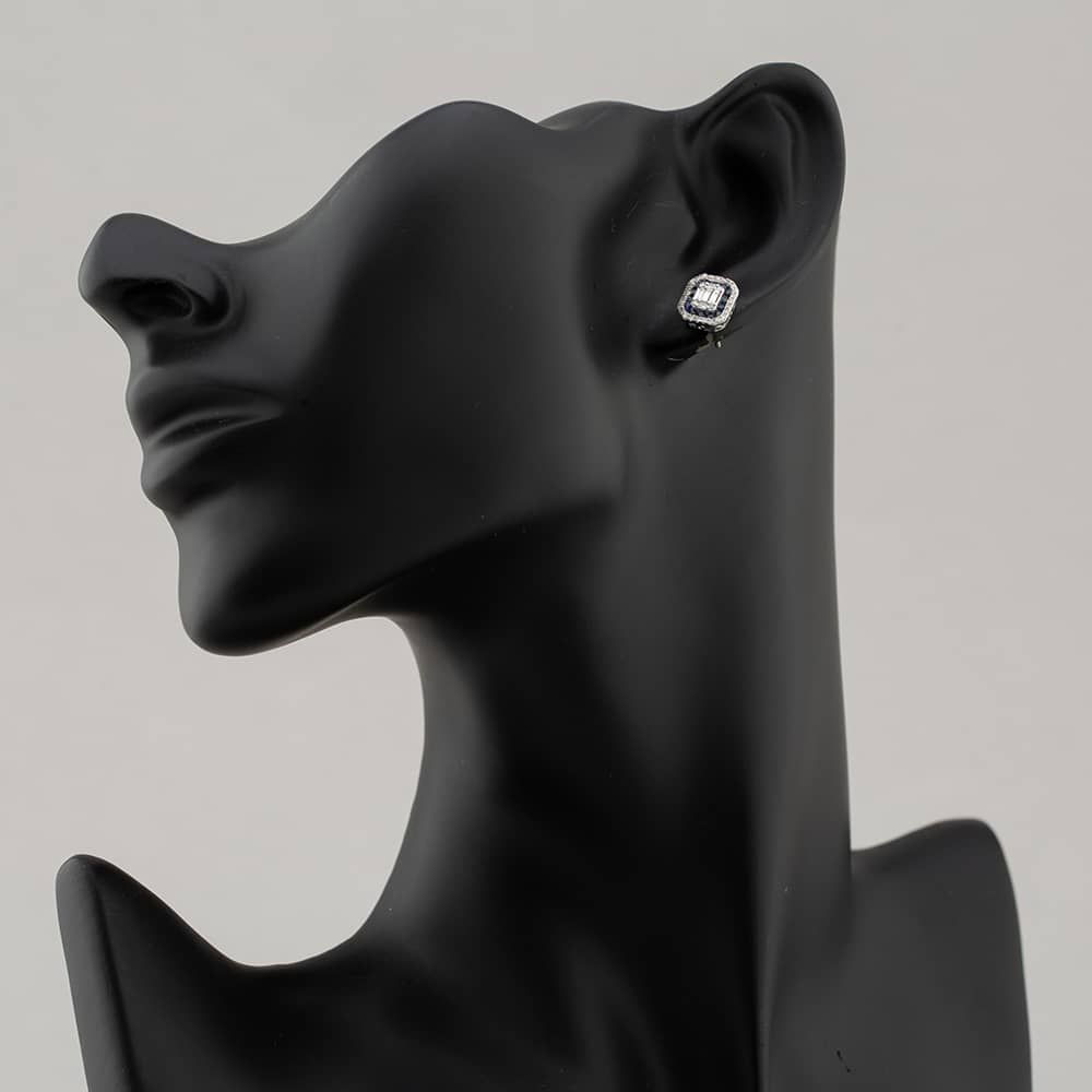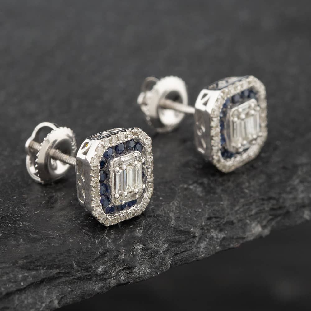 14ct White Gold 0.40ct Sapphire & 0.50ct Diamond Oblong Stud Earrings