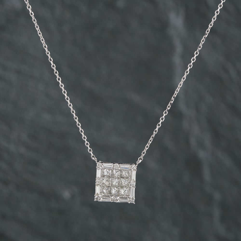 14ct White Gold 0.66ct Diamond Pendant & 18 Inch Trace Chain