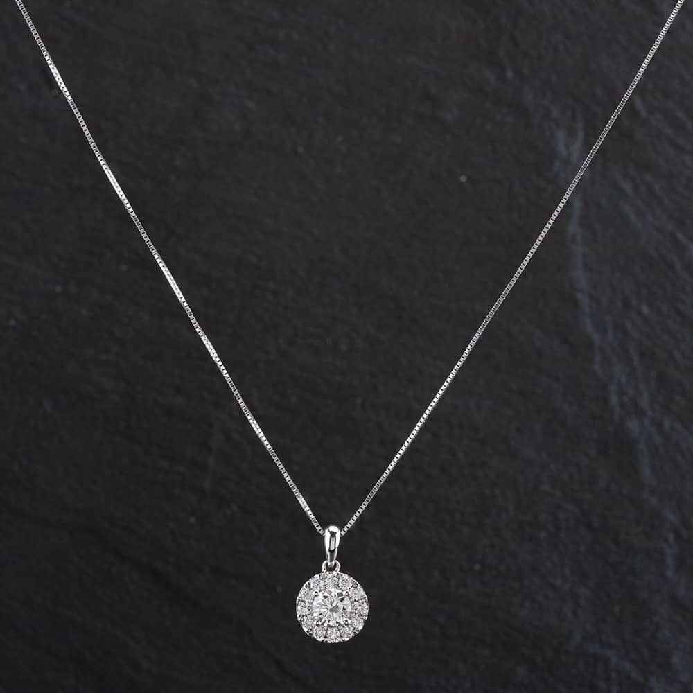 14ct White Gold 0.75ct Diamond 18 Inch Box Chain & Pendant