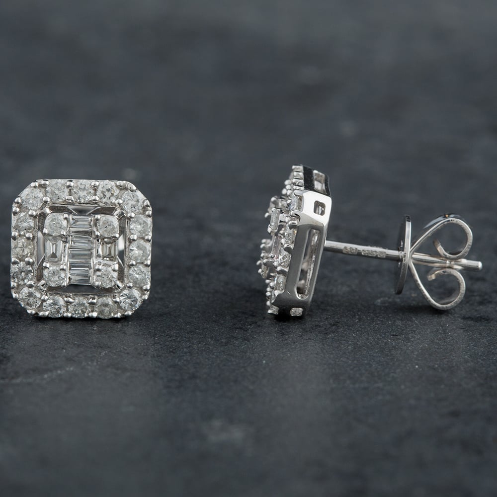 14ct White Gold 0.80ct Diamond Square Stud Earrings