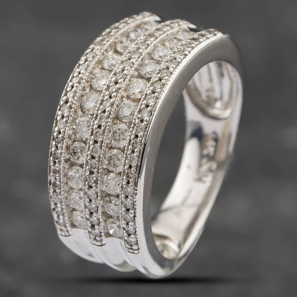 14ct White Gold 1.00ct Brilliant Cut Diamond Five Row Ring