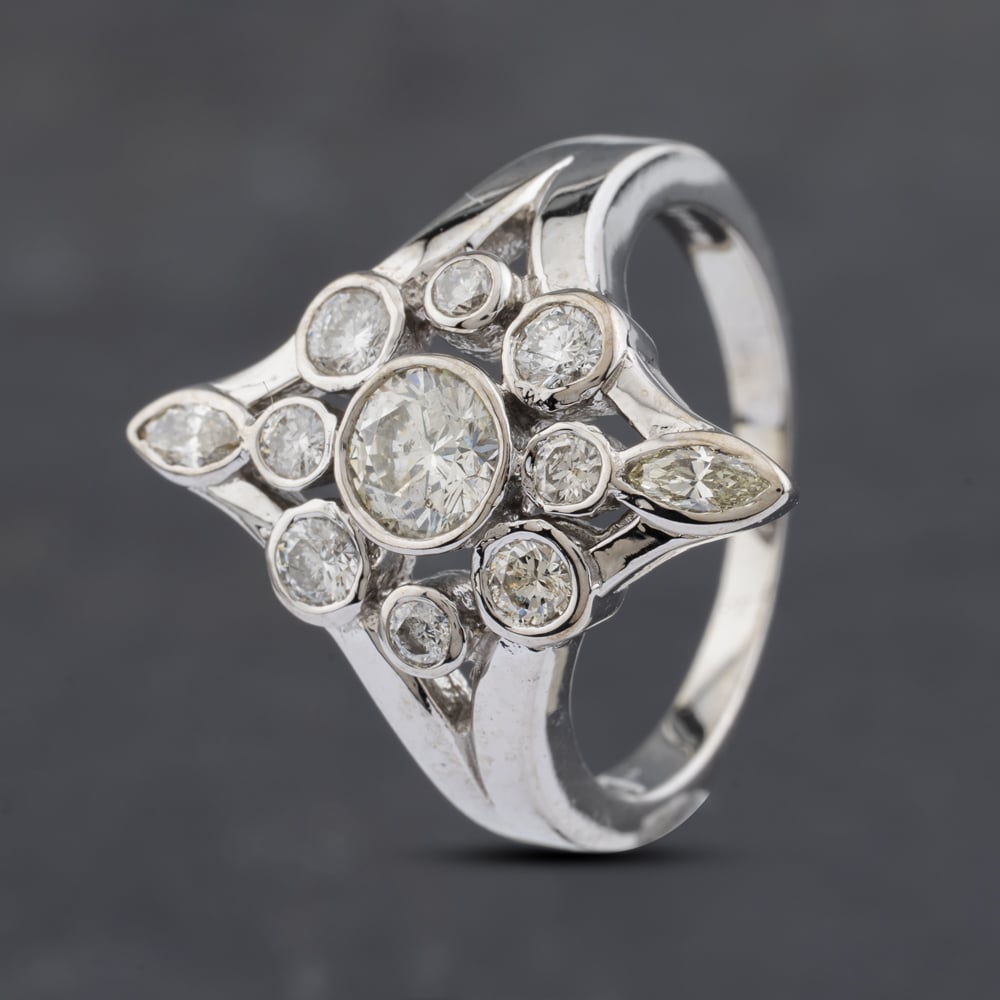 <a href="https://www.thbaker.co.uk/stores/"><b>Click here to find your <font color="6d1a42">nearest store</font></b></a>Second Handhttps://www.thbaker.co.uk/media/catalog/product/4/1/41-48-1910_model_01.jpg5056819163066condition:Yesdisc_no_stock:NoYesNoSecond Hand41481910LadiesT H Baker Packaging12 Month WarrantyNoRing7.0gO 1/2Cluster14ct White GoldSilverDiamondWhiteMulti-Cut1.00ct{"name":"v12_finance","text":"Or from \u00a325 per month","imageUrl":"https:\/\/www.thbaker.co.uk\/media\/nosto\/v12-finance.png"}41481910Second Hand 14ct White Gold 1.00ct Diamond Star Cluster Ring41-48-19102025-03-22 00:00:000[{"path":"\/Jewellery\/Diamond Jewellery","url":"\/diamonds\/"},{"path":"\/Jewellery","url":"\/jewellery\/"},{"path":"\/Jewellery\/Rings","url":"\/rings\/"},{"path":"\/Jewellery\/Rings\/Diamond Rings","url":"\/diamond-rings\/"},{"path":"\/Jewellery\/Rings\/Gold Rings","url":"\/gold-rings\/"},{"path":"\/Second Hand Collection","url":"\/second-hand\/"},{"path":"\/Second Hand Collection\/Second Hand Jewellery","url":"\/second-hand-jewellery\/"},{"path":"\/Second Hand Collection\/Second Hand Rings","url":"\/second-hand-rings\/"},{"path":"\/Jewellery\/Diamond Jewellery\/Cluster Diamond Jewellery","url":"\/cluster-diamond-jewellery\/"},{"path":"\/Jewellery\/White Gold Jewellery","url":"\/white-gold-jewellery\/"},{"path":"\/Second Hand Collection\/Second Hand Jewellery\/Second Hand White Gold","url":"\/second-hand-white-gold-jewellery\/"},{"path":"\/Second Hand Collection\/Second Hand Rings\/Second Hand Cluster Rings","url":"\/second-hand-cluster-rings\/"},{"path":"\/Second Hand Collection\/Second Hand Ladies","url":"\/second-hand-ladies-collection\/"},{"path":"\/Second Hand Collection\/Second Hand Diamonds","url":"\/second-hand-diamond-jewellery\/"},{"path":"\/Second Hand Collection\/Second Hand Rings\/Second Hand Gold Rings","url":"\/second-hand-gold-rings\/"},{"path":"\/Jewellery\/Ladies Jewellery","url":"\/ladies-jewellery\/"},{"path":"\/Jewellery\/White Gold Jewellery\/White Gold Rings","url":"\/white-gold-rings\/"},{"path":"\/Jewellery\/White Gold Jewellery\/White Gold Rings\/White Gold Diamond Rings","url":"\/white-gold-diamond-rings\/"},{"path":"\/Free Gift Card - When you spend \u00a3500+","url":"\/free-gift-card\/"},{"path":"\/Second Hand Collection\/Second Hand White Gold","url":"\/second-hand-white-gold\/"},{"path":"\/Spend over \u00a31000 and receive a \u00a3100 gift card","url":"\/gift-card-promotion\/"},{"path":"\/\u00a3150 Gold Gift Card (\u00a31000 - \u00a32000)","url":"\/150-gold-gift-card\/"},{"path":"\/Second Hand Collection\/Second Hand Jewellery\/Second Hand 14ct","url":"\/second-hand-14ct-jewellery\/"},{"path":"\/Second Hand Collection\/Second Hand Rings\/Second Hand Ladies Rings","url":"\/second-hand-ladies-rings\/"},{"path":"\/Second Hand Collection\/Second Hand Rings\/Second Hand White Gold Rings","url":"\/second-hand-white-gold-rings\/"},{"path":"\/Second Hand Collection\/Second Hand Rings\/Second Hand Diamond Rings","url":"\/second-hand-diamond-rings\/"},{"path":"\/Free Gift With Purchase Products","url":"\/free-gift-with-purchase-products\/"},{"path":"\/Jewellery\/Diamond Jewellery\/Diamond Rings","url":"\/diamond-rings-2\/"}]2025-03-22
