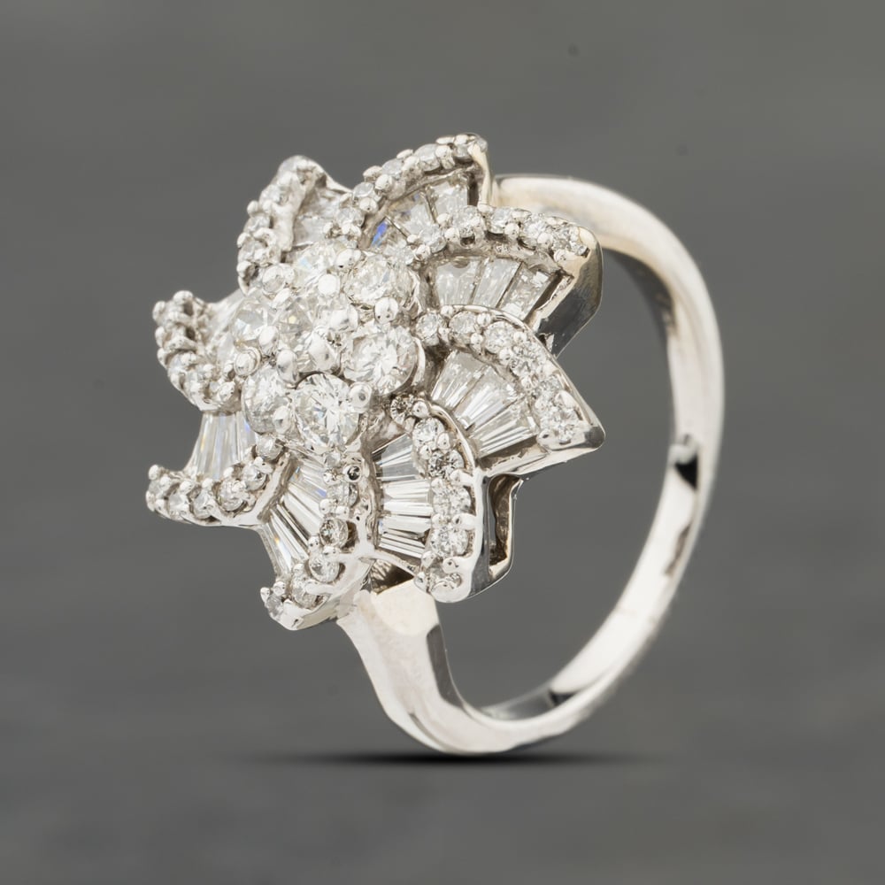 14ct White Gold 1.36ct Diamond Flower Cluster Ring