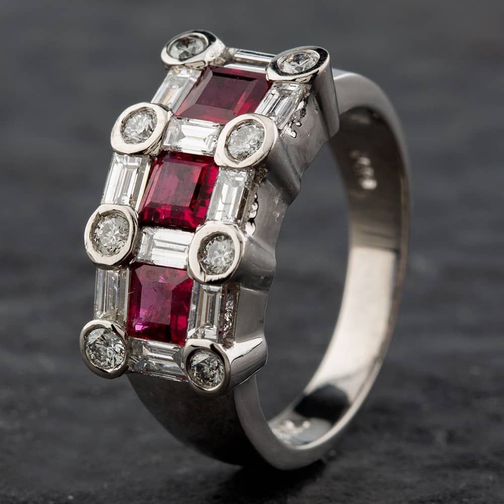 14ct White Gold 1.60ct Ruby & 1.25ct Diamond Band Fancy Ring