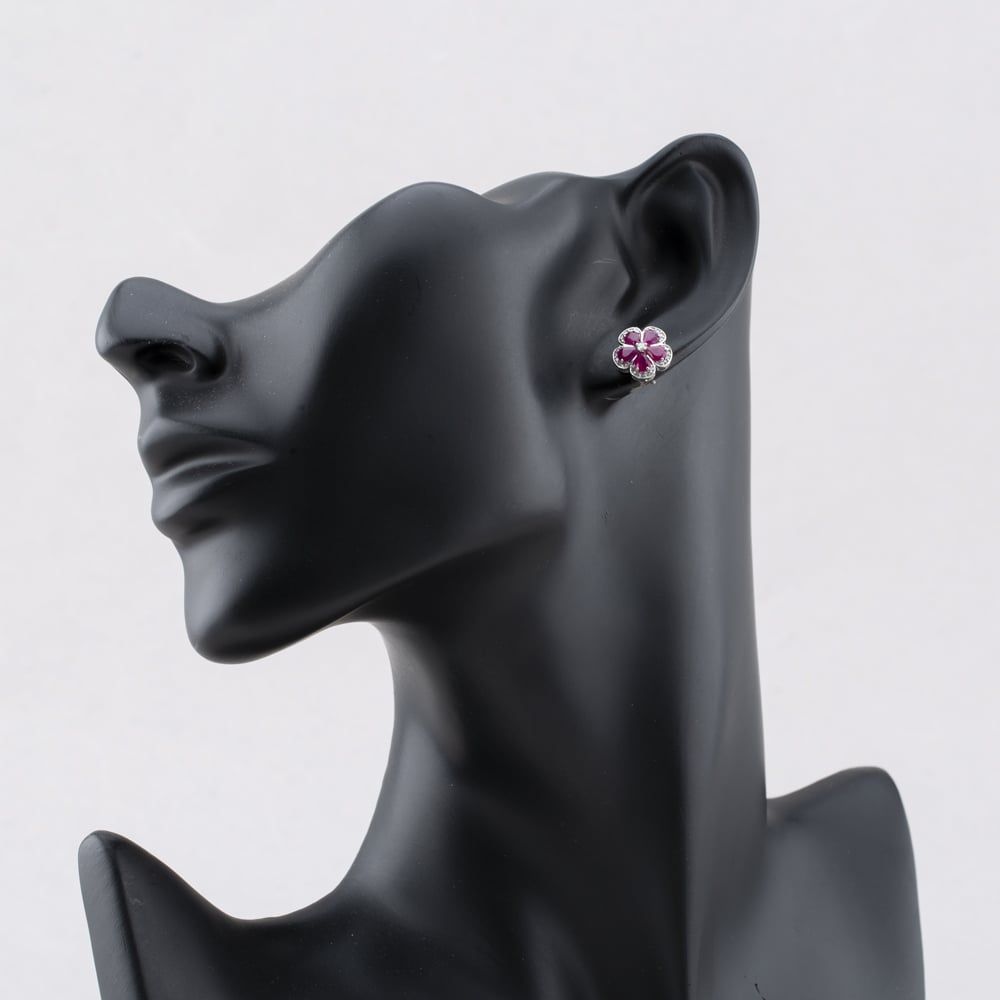 Second Hand 14ct White Gold 1.80ct Ruby & 0.20ct Brilliant Cut Diamond Flower Cluster Stud Earrings 43171227