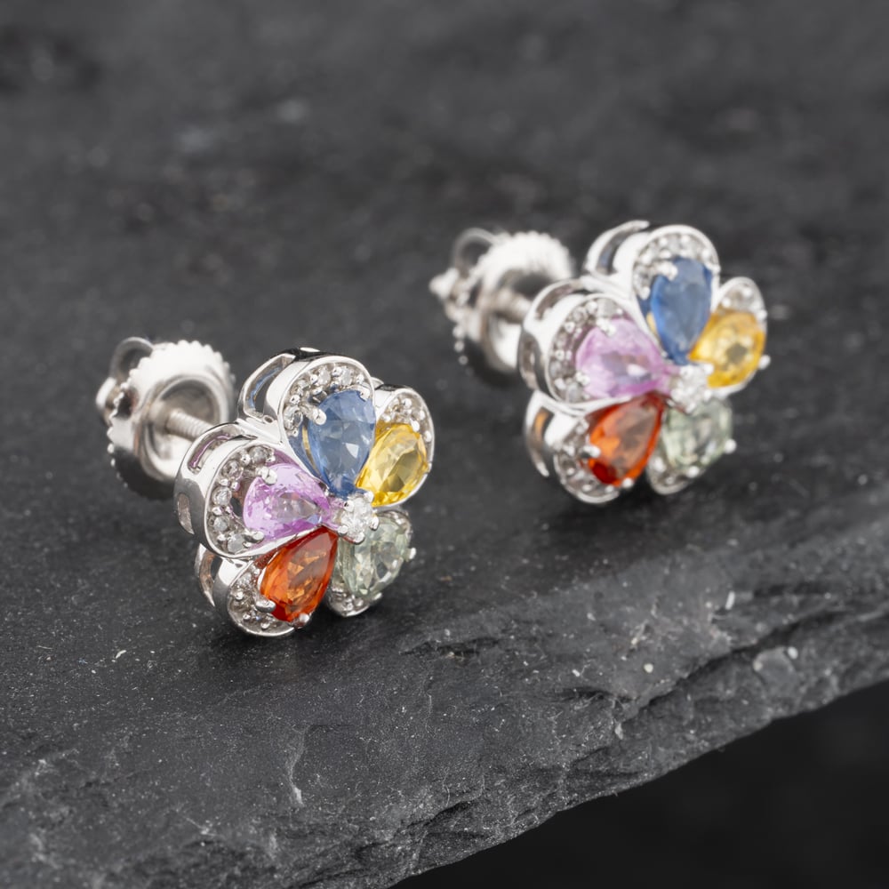 14ct White Gold 1.80ct Sapphire & 0.20ct Diamond Flower Stud Earrings