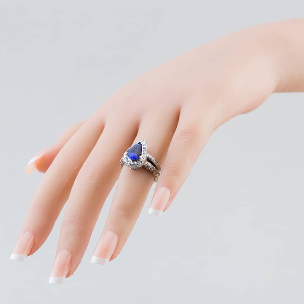 14ct White Gold 1.86T Pear Cut Tanzanite & Brilliant Cut Diamond Cluster Ring