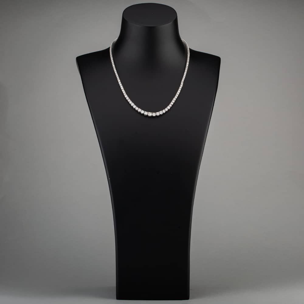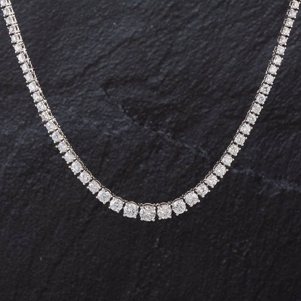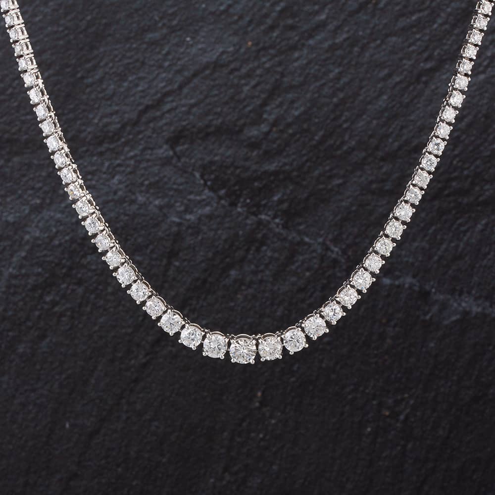 14ct White Gold 10.00ct Brilliant Cut Diamond Graduating 17 Inch Tennis Necklace