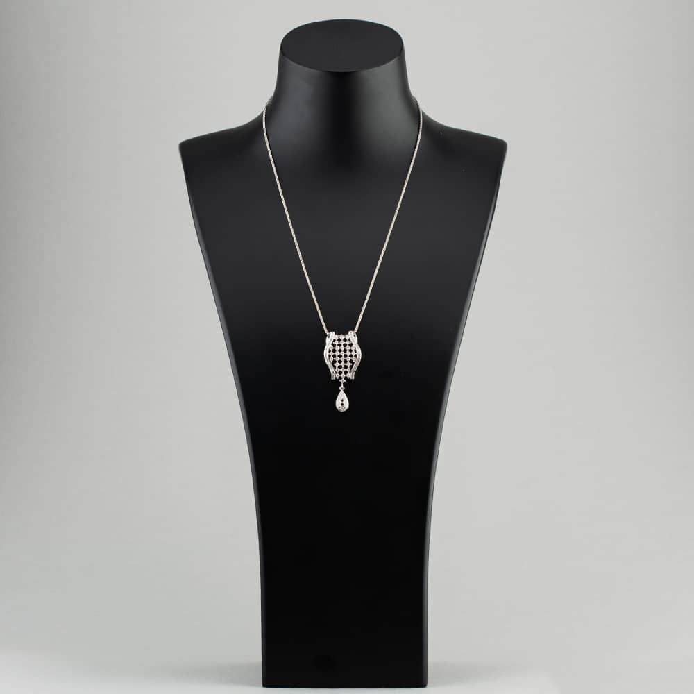 14ct White Gold 2.00ct Diamond Openwork Dropper Pendant & 18 Inch Spiga Chain