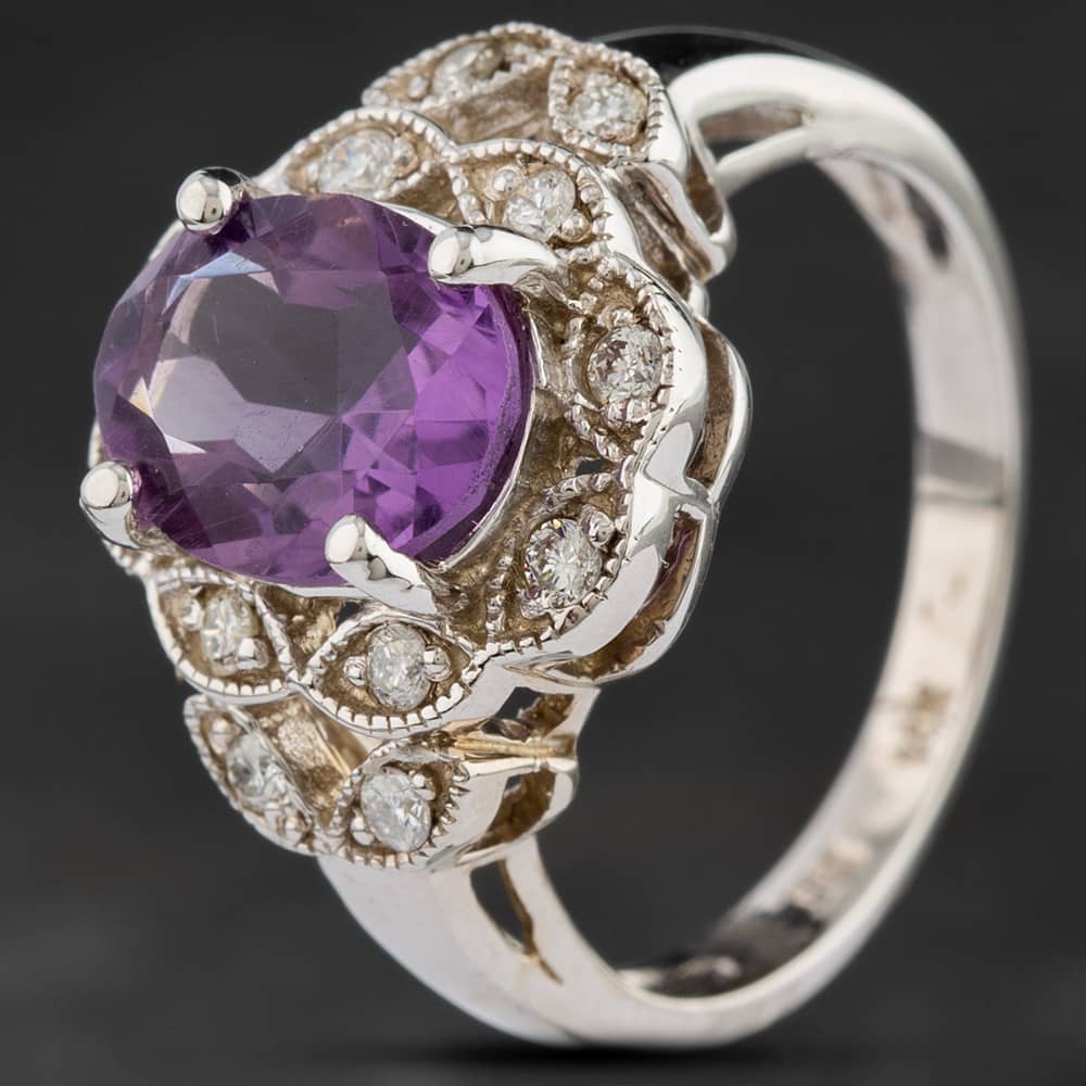 14ct White Gold 2.20ct Amethyst & 0.25ct Brilliant Cut Diamond Oval Cluster Ring