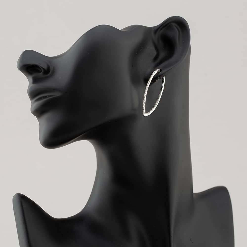 14ct White Gold 39mm 0.50ct Single Cut Diamond Pointed Hoop Earrings
