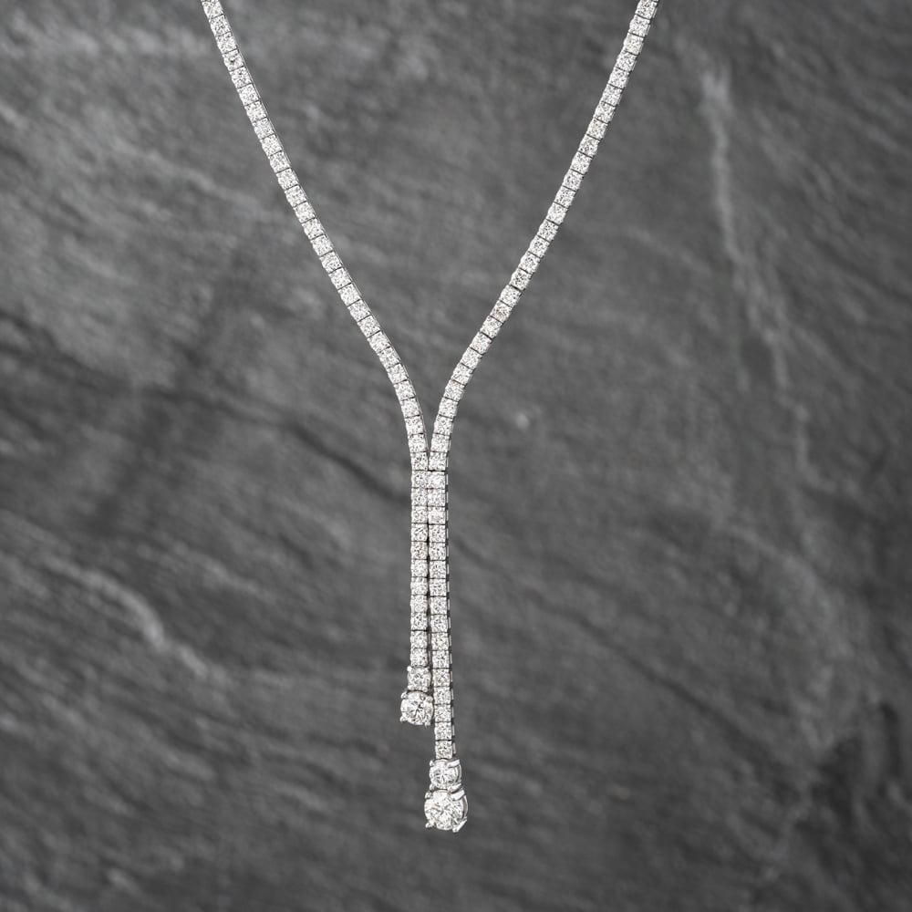 14ct White Gold 4.74ct Brilliant Cut Diamond Dropper 17 Inch Necklace