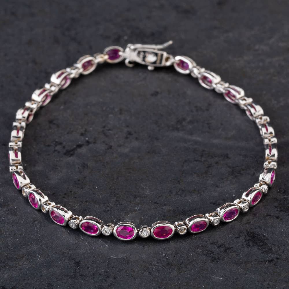 14ct White Gold 5.30ct Ruby & 0.23ct Brilliant Cut Diamond Line Rubover Set 7 Inch Bracelet