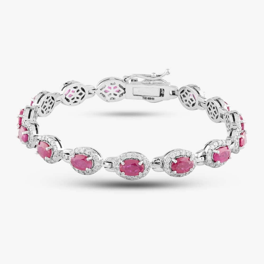 14ct White Gold 6.04ct Ruby & 2.03ct Brilliant Cut Diamond Multi Cluster Bracelet