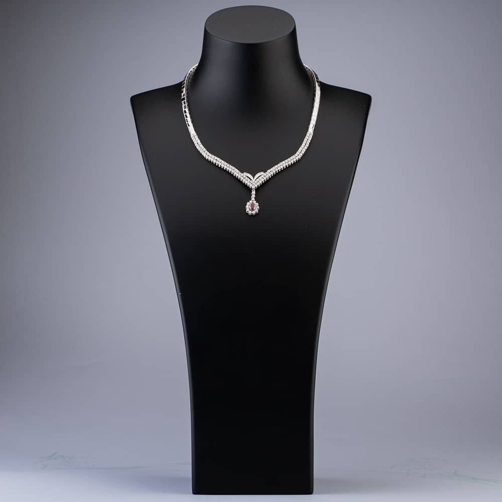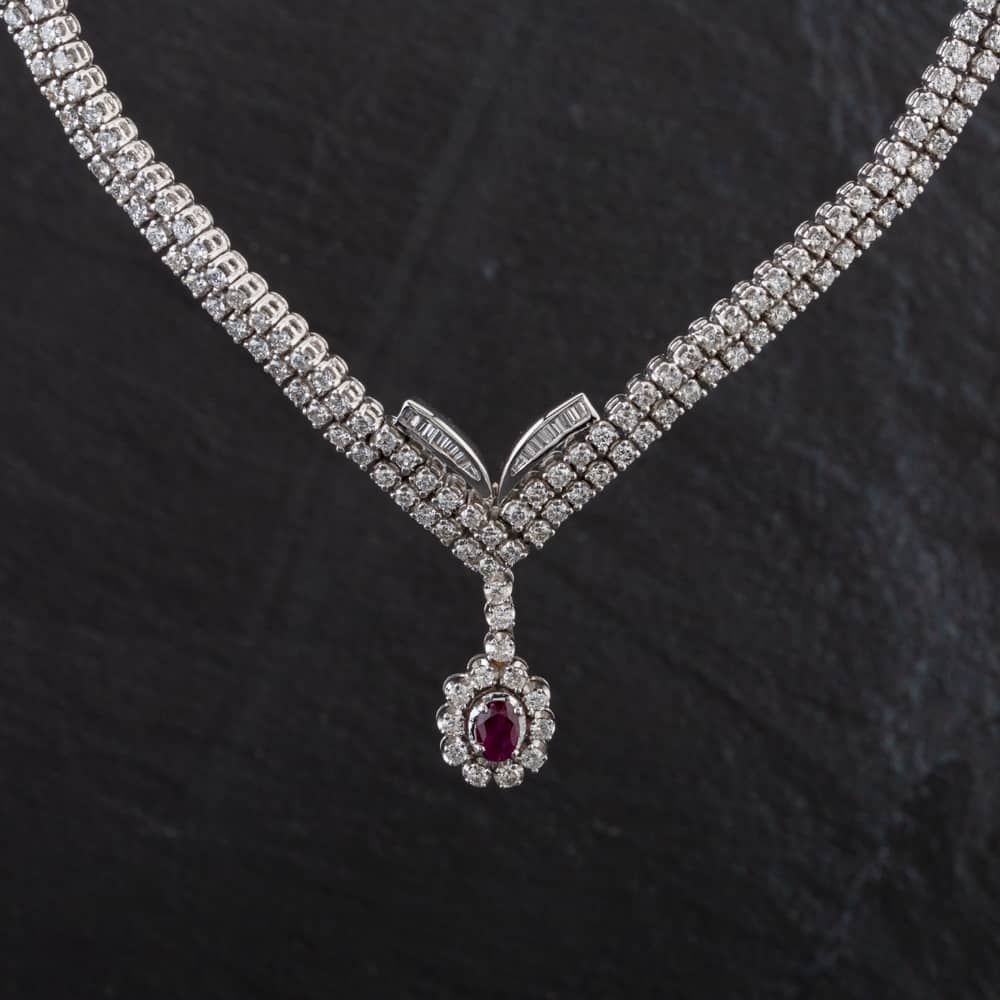 14ct White Gold 0.60ct Ruby & 5.33ct Brilliant Cut Diamond Two Row 17 Inch Necklace