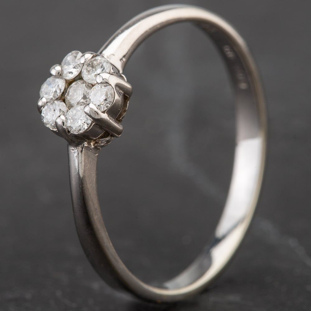 14ct White Gold 7 Stone Diamond Flower Cluster 0.22ct Ring
