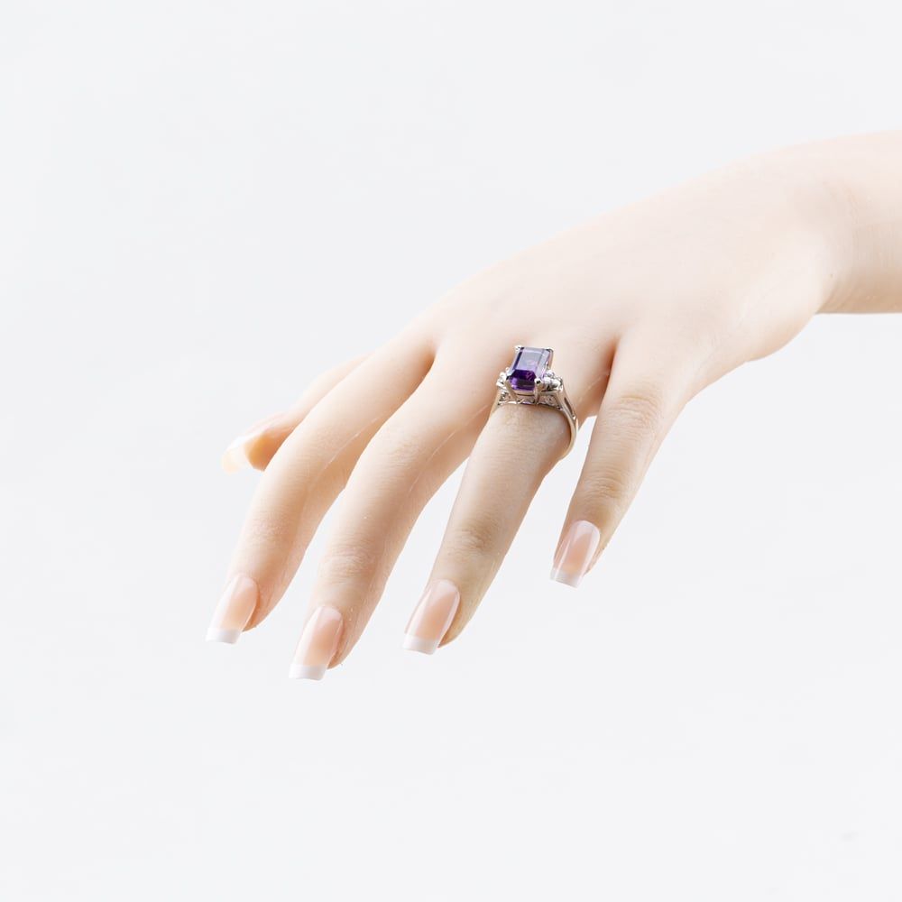 14ct White Gold Amethyst & Diamond Oblong Dress Ring