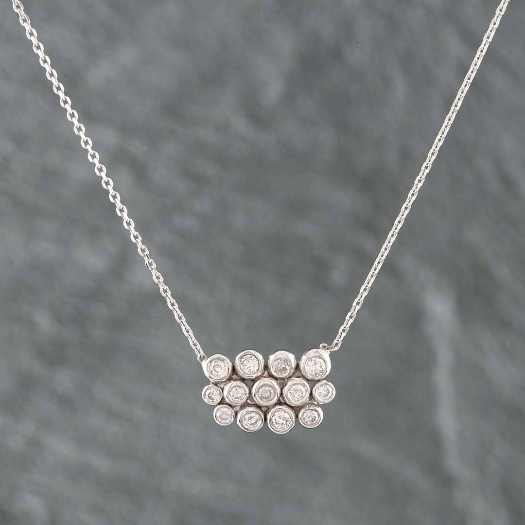 14ct White Gold Brilliant Cut Diamond Bubble Cluster Pendant & 16 Inch Trace Chain