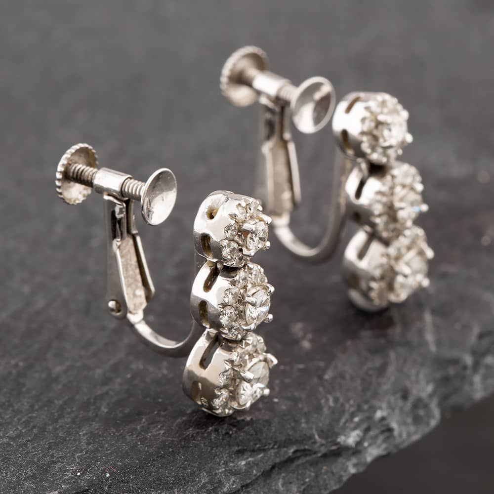 Second Hand 14ct White Gold Brilliant Cut Diamond Graduated Triple Cluster Dropper Earrings 43171039 Second Hand 14ct White Gold Brilliant Cut Diamond Graduated Triple Cluster Dropper Earrings 43171039