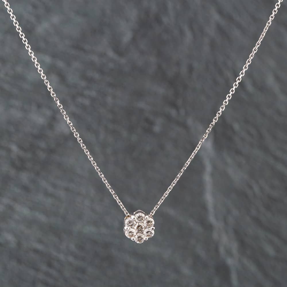 14ct White Gold Brilliant Cut Diamond Seven Stone Cluster Pendant & 18 Inch Trace Chain