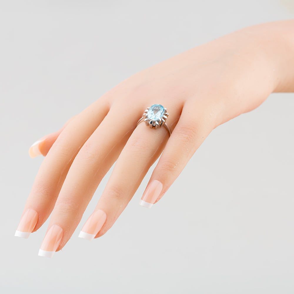 14ct White Gold Certificated Aquamarine Oval Dress Ring