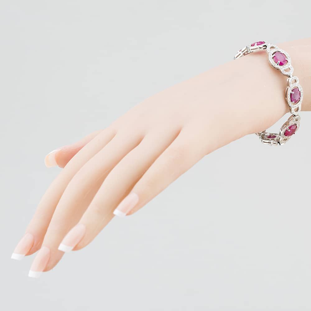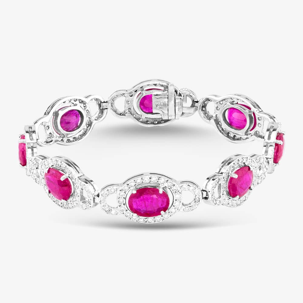 14ct White Gold Oval Cut Ruby & Brilliant Cut Diamond Halo 7.25 Inch Bracelet