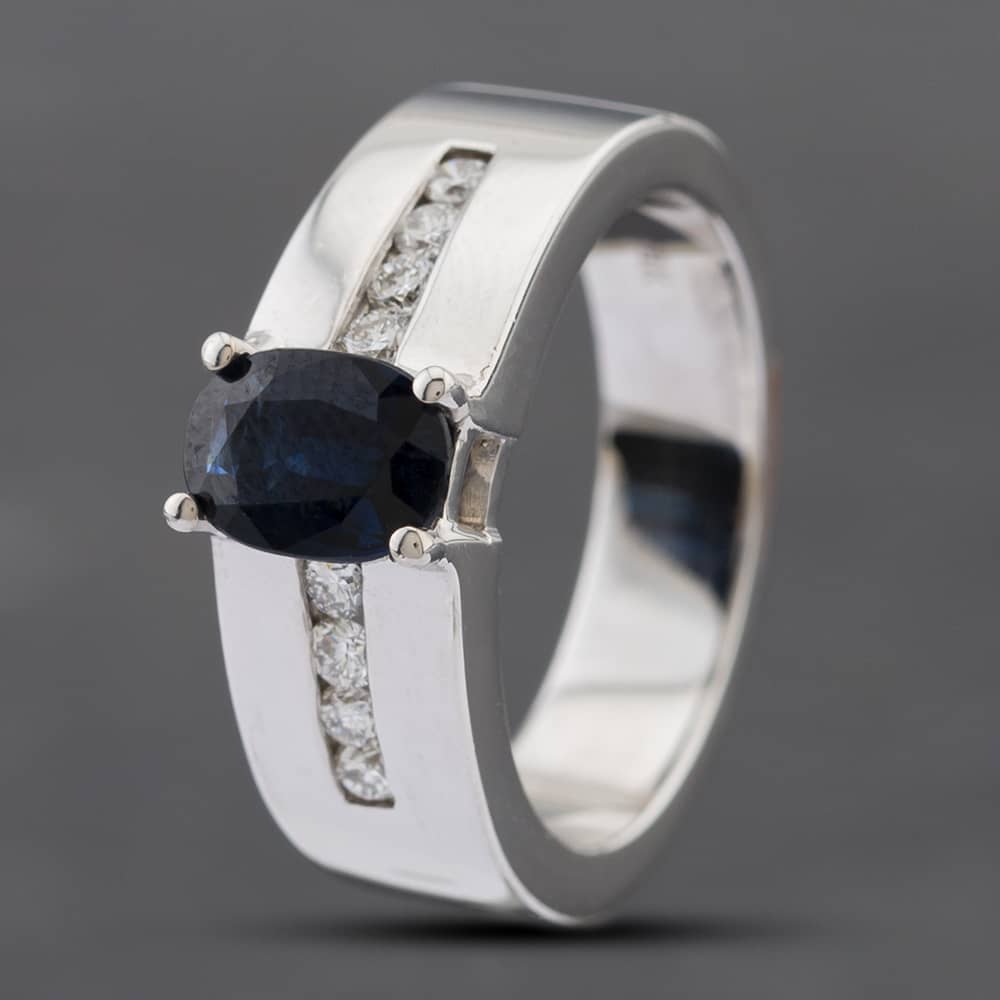14ct White Gold Oval Cut Sapphire & Brilliant Cut Diamond Band Ring
